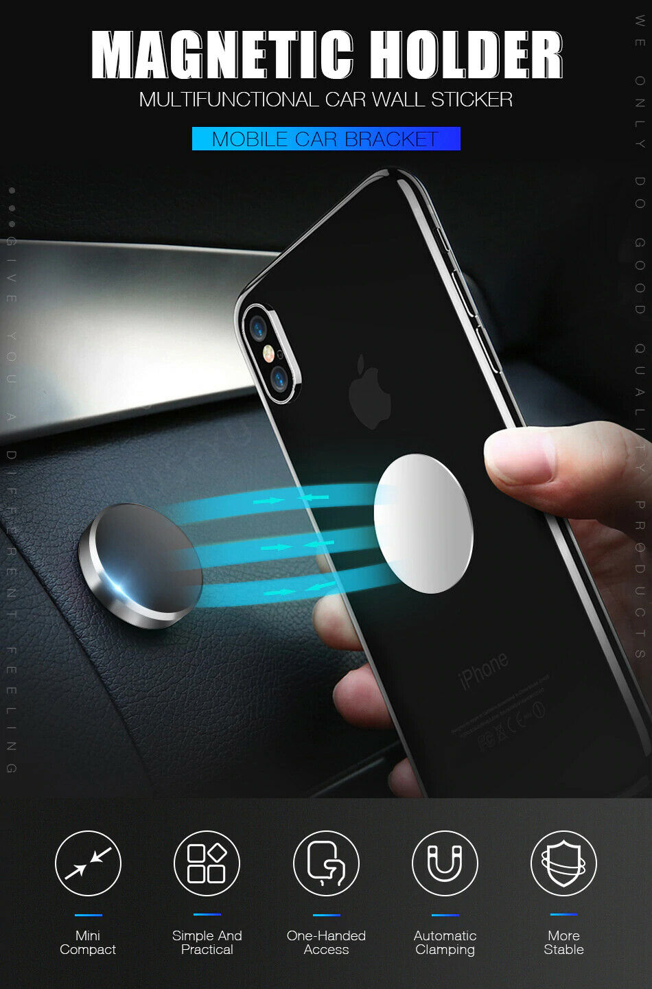 - Portable mini magnetic holder, does not block your sight.