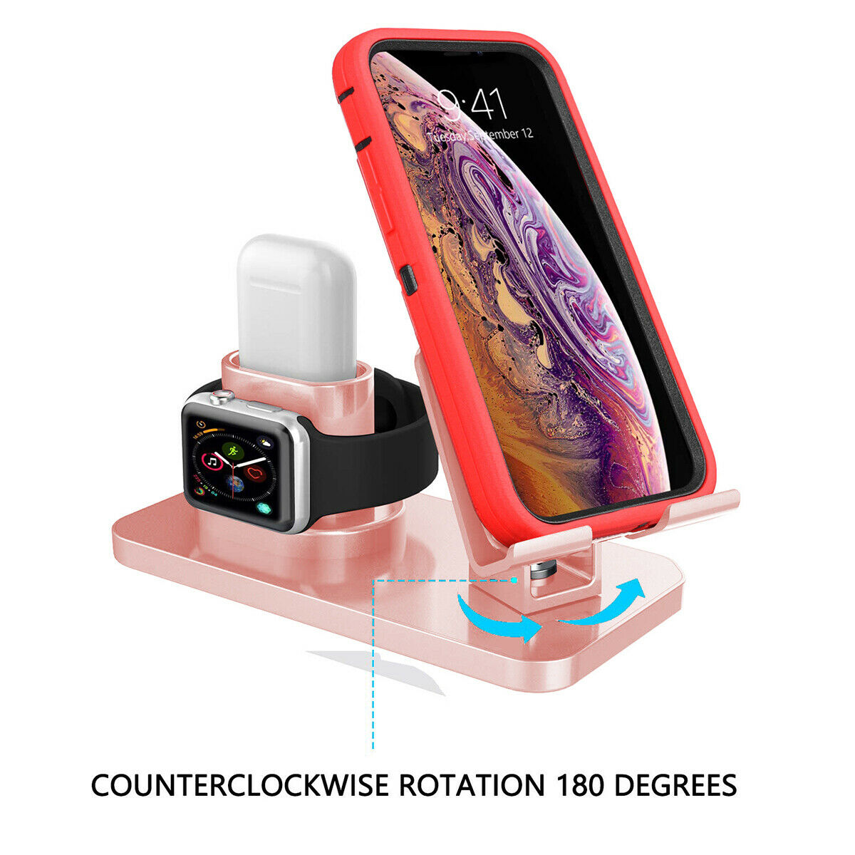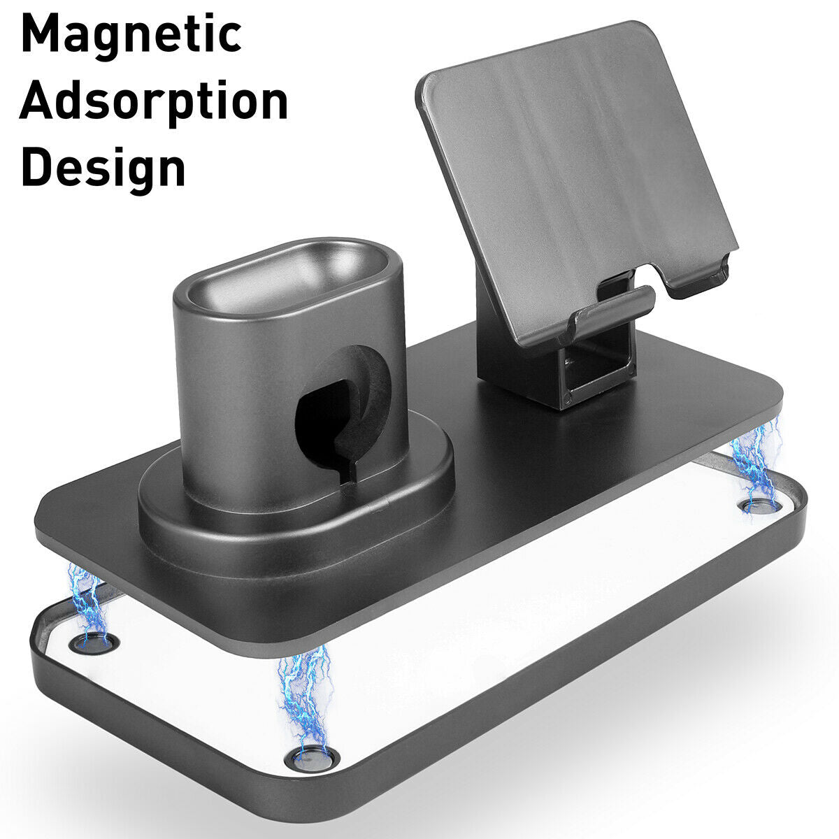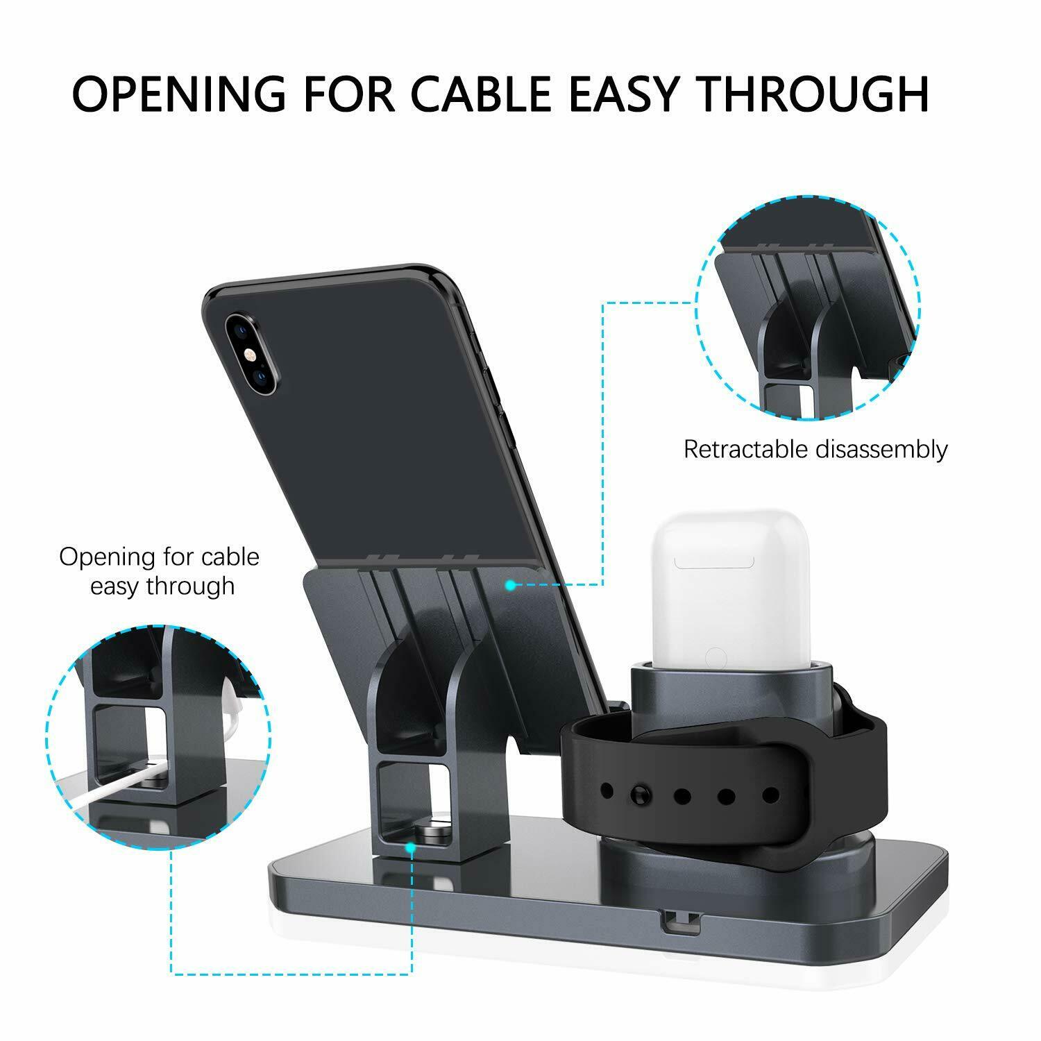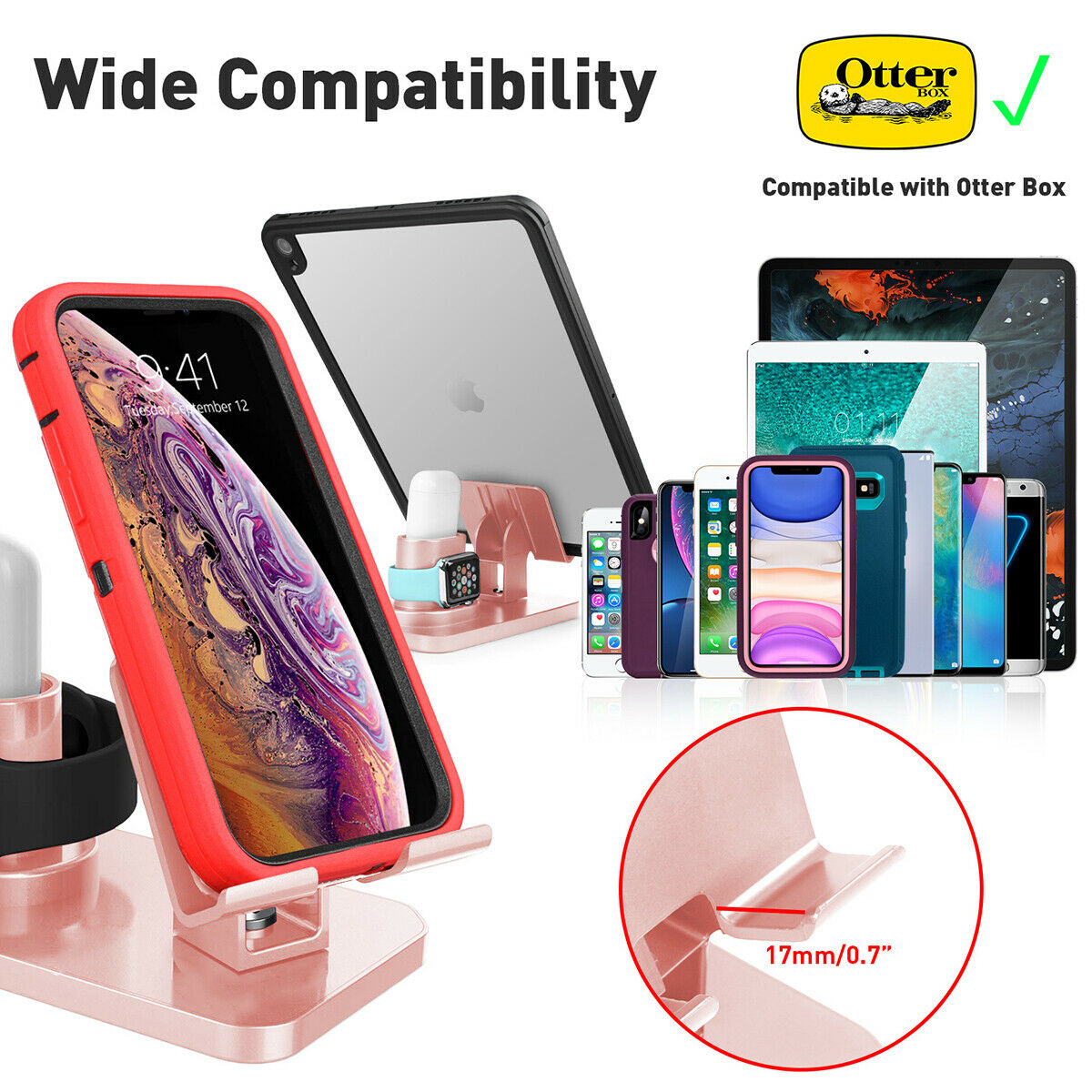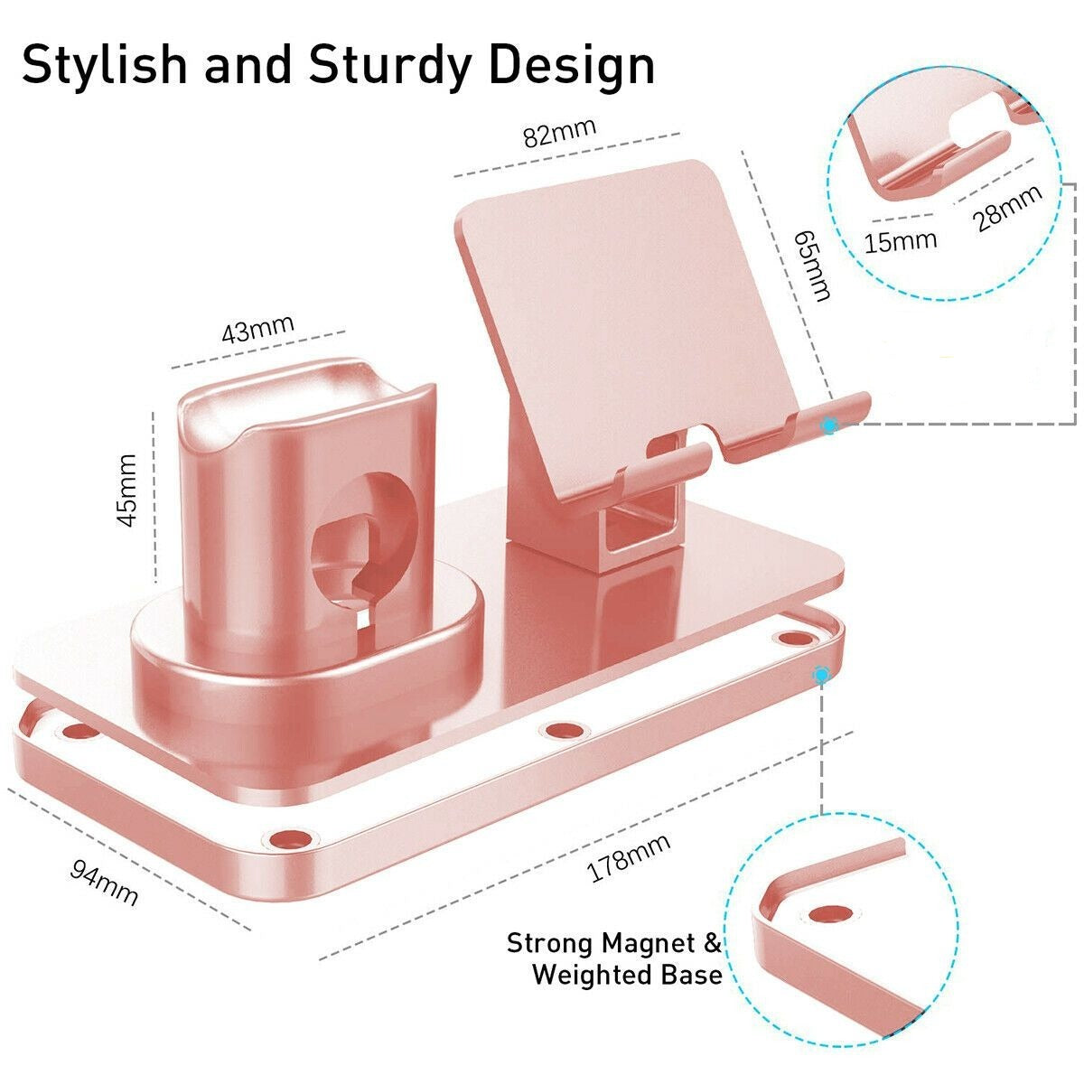 ☑️ Strong & Sturdy: The stand is stable even with multiple devices being charged at the same time. Rubber on the bottom keeps the charging dock from slipping, and also protects your table surfaces. A flexible rubber slot for iWatch effectively holds the magnetic charger. 20mm hook holds your devices even with a heavy case on.