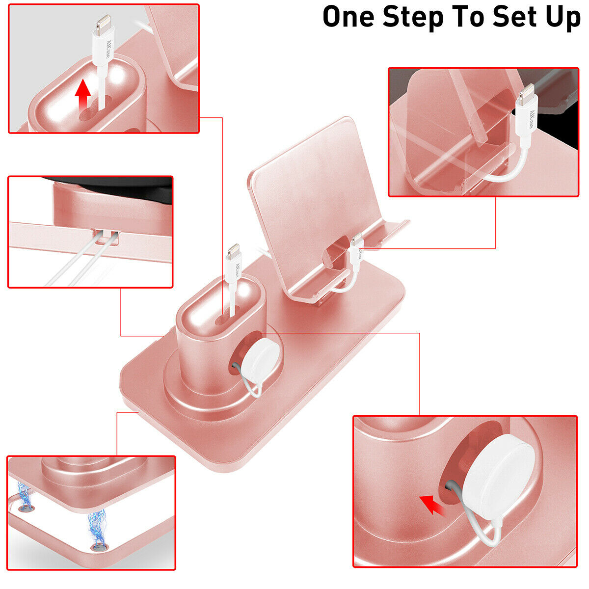 ☑️ Charge All Your Devices Faster: This 3-in-1 phone charging dock station is perfect for anyone with a busy lifestyle. It ensures lightning fast-charging up to 3 of your Apple devices, so you can start your day fully charged and ready to go. Don't be caught without power again!