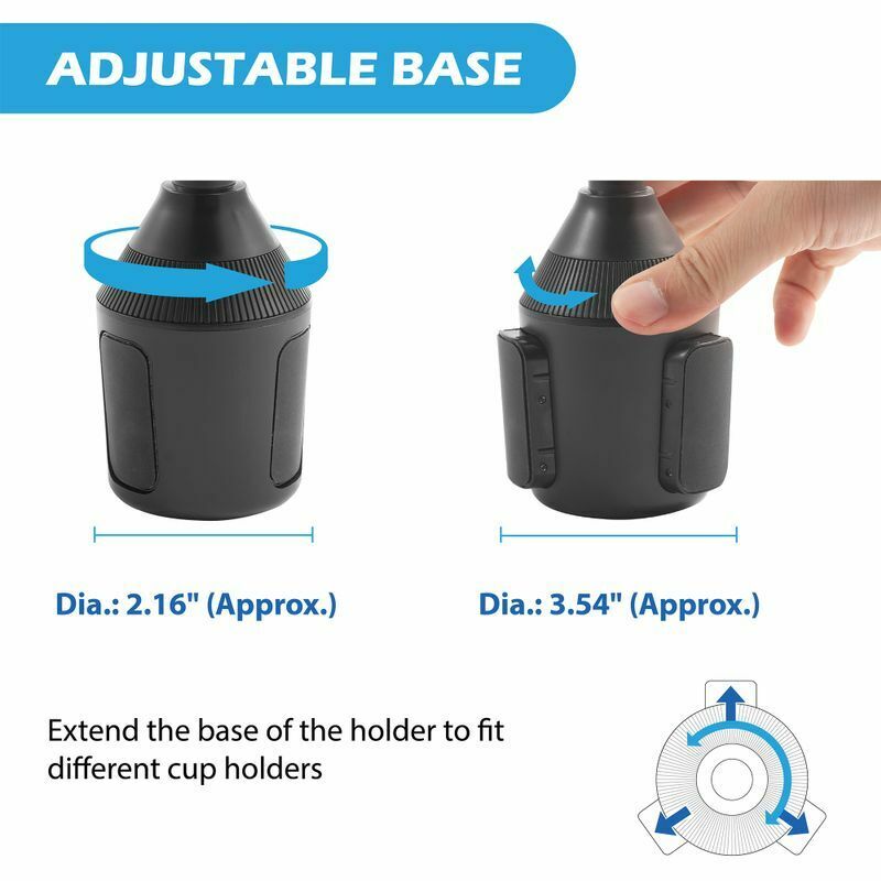 - An adjustable base can expand and contract to fit an assortment of different sized cup holders.