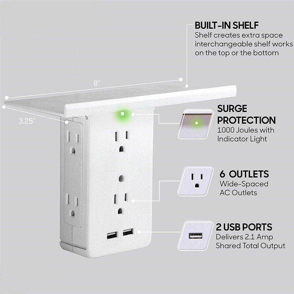 ☑️ Simultaneously charges up to 8 devices with the 6 wide-spaced AC outlets and 2 USB ports.